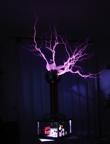 Die Konstruktion besteht komplett aus Kunststoff und bietet hervorragende Eigenschaften für eine reibungslose Funktion eines Teslatrafos.