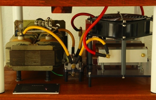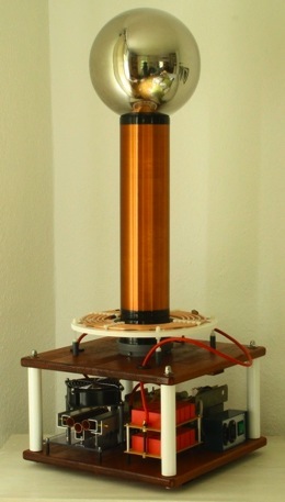 Auf den Bildern sehen Sie einen komplett aufgebauten Teslatransformator mit den Komponenten aus dem Angebot.