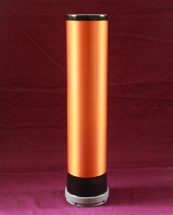 Die Abschlusskapazität (Topload) bildet eine hochglanzpolierte Edelstahlkugel mit einem Durchmesser von 200 mm. Diese wird einfach auf die Sekundärspule aufgesetzt.