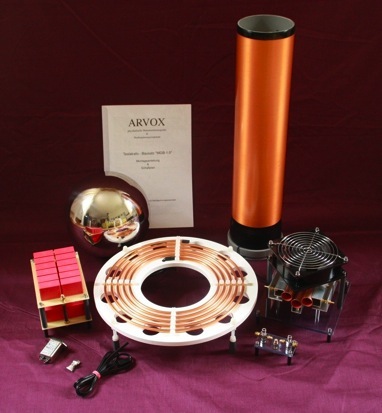 Bausatz für einen Teslatrafo mit bis zu über einem Meter Funkenlänge.