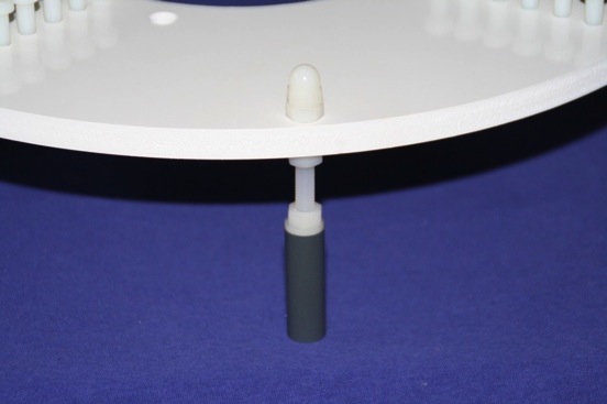 Um den Kopplungsfaktor zwischen Primär-und Sekundärspule zu senken oder zu erhöhen, kann die Halterung in der Höhe verstellt werden.